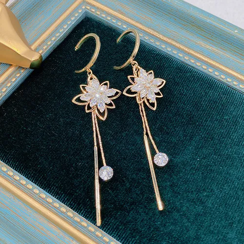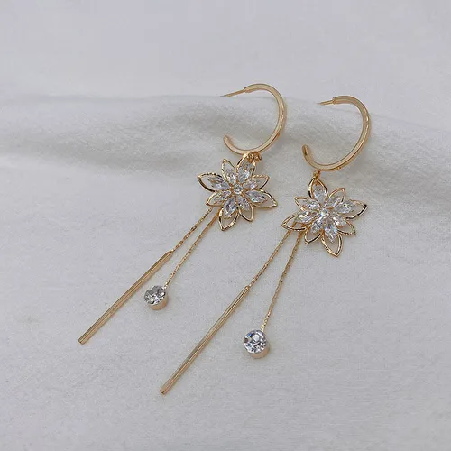 New Trendy Long Tassel Earrings Female S925 Silver Needle Zircon Flower Dangle Earrings 复制 复制 566 sales