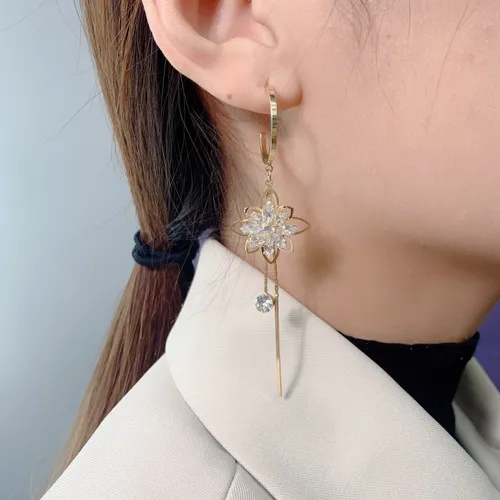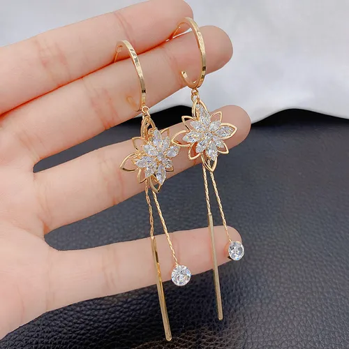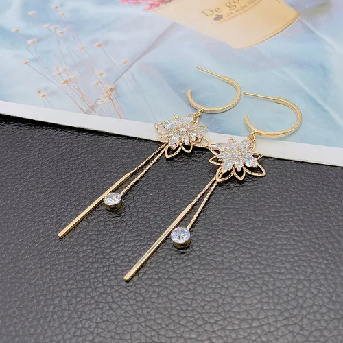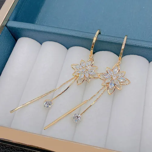 New Trendy Long Tassel Earrings Female S925 Silver Needle Zircon Flower Dangle Earrings 复制 复制 566 sales
